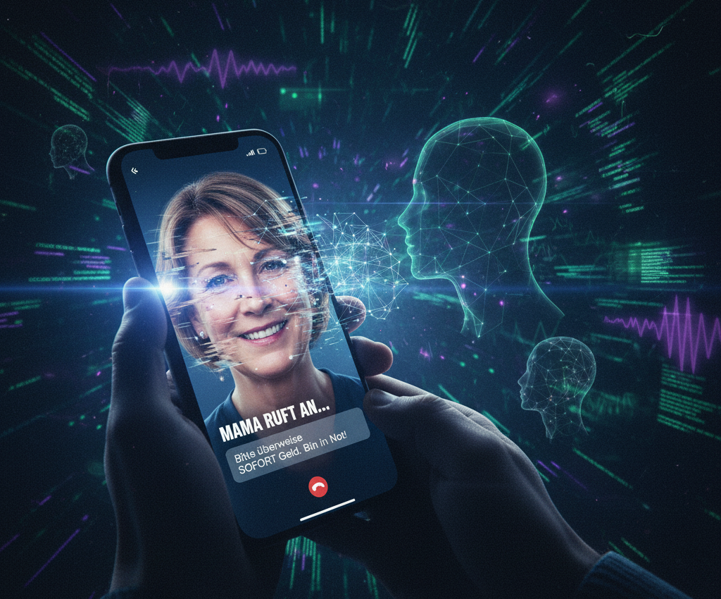 1. Stimmen-Imitation (Voice Cloning): Kriminelle benötigen oft nur wenige Sekunden einer Stimmprobe aus sozialen Medien oder Sprachnachrichten, um eine täuschend echte Kopie zu erstellen. Plötzlich ruft die "Enkelin" oder der "Chef" mit einer bekannten Stimme an, die um dringende Überweisungen bittet.