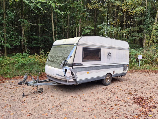 - In Sande, Gemeinde Nehmten, entsorgten Unbekannte zwischen dem 15. Oktober 2025, 22:00 Uhr, und dem 16. Oktober 2025, 09:00 Uhr, zwei schrottreife Wohnwagen auf dem Parkplatz eines Ruheforstes und entfernten deren Kennzeichen. Die Polizei ermittelt wegen unerlaubter Abfallentsorgung und sucht Zeugen, die Angaben zu den letzten Besitzern der Wohnwagen oder zu eigenen Beobachtungen machen können.In Sande, Gemeinde Nehmten, entsorgten Unbekannte zwischen dem 15. Oktober 2025, 22:00 Uhr, und dem 16. Oktober 2025, 09:00 Uhr, zwei schrottreife Wohnwagen auf dem Parkplatz eines Ruheforstes und entfernten deren Kennzeichen. Die Polizei ermittelt wegen unerlaubter Abfallentsorgung und sucht Zeugen, die Angaben zu den letzten Besitzern der Wohnwagen oder zu eigenen Beobachtungen machen können.0 0 Geteilt 708KInfo mitteilenTeilen