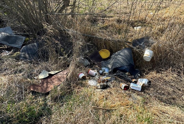 Am 19.03.2026 entdeckte ein Zeuge bei Bad Buchau in einem Wassergraben Hausmüll, Elektroschrott sowie Öle und Lacke, die dort von einem Umweltsünder entsorgt wurden.